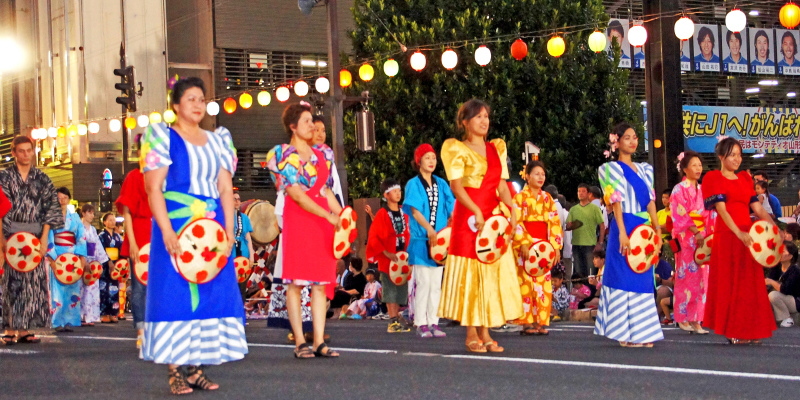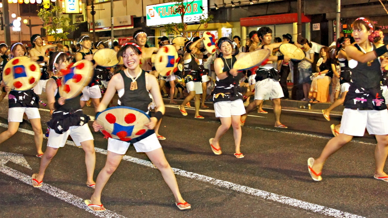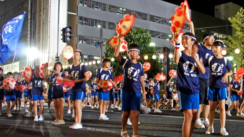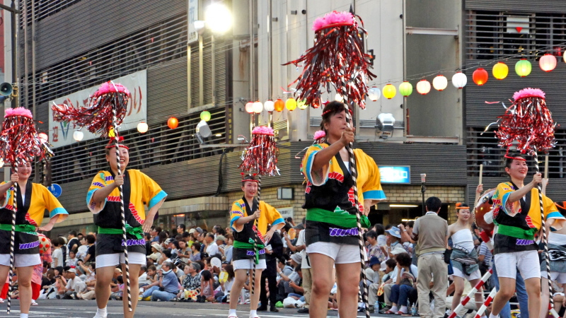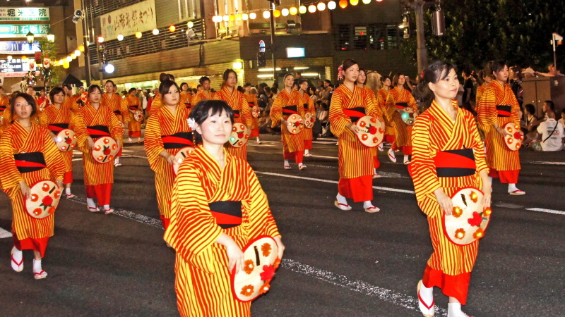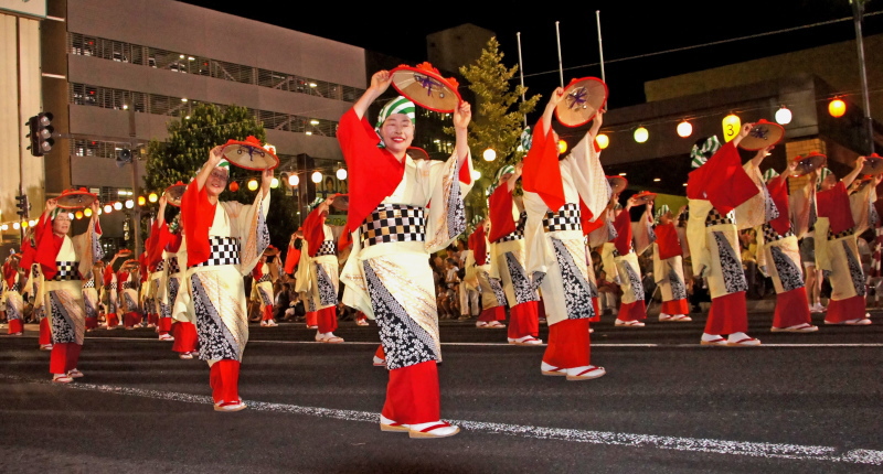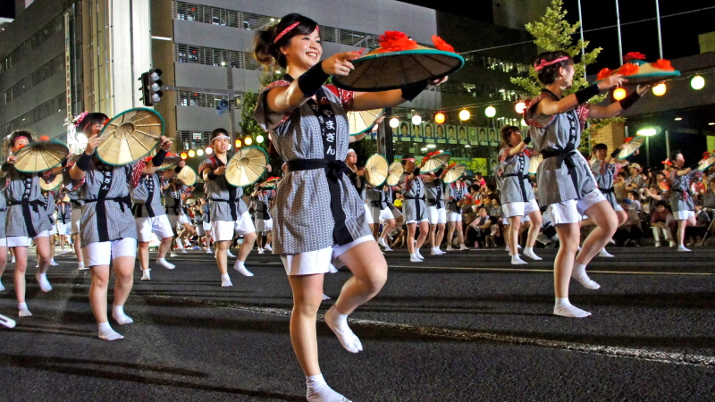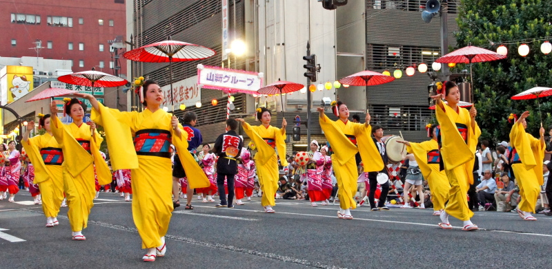 花笠祭りは「フラワーハットダンス」の名で世界に知られ、国内外から毎年百万人近くの見物客が訪れる。