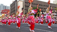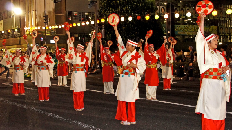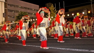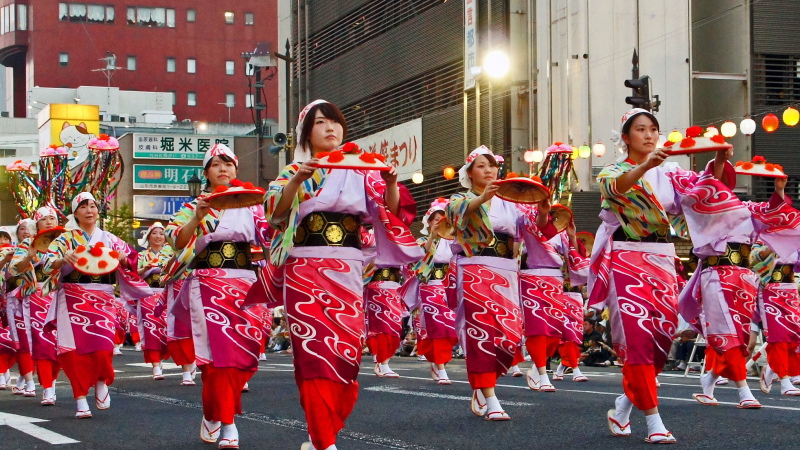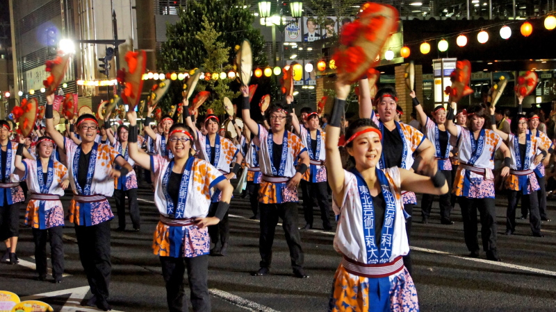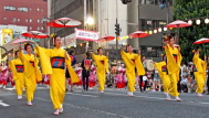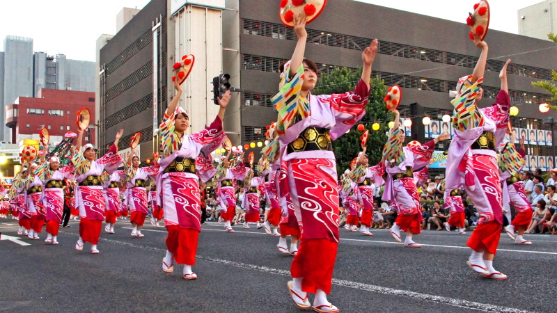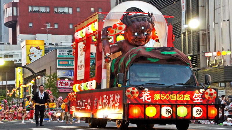 パレードでは華やかに彩られた蔵王大権現の山車を先頭に、「ヤッショ!、マカショ!」の勇ましい掛け声と花笠太鼓が高らかに響き渡り、あでやかな衣装に身を包んだ1万人を超える踊り手の躍動感あふれるダイナミックな踊りが披露される。
