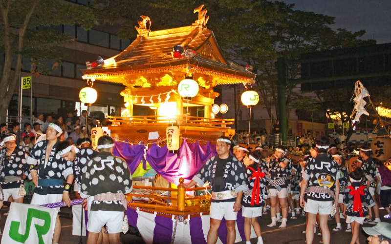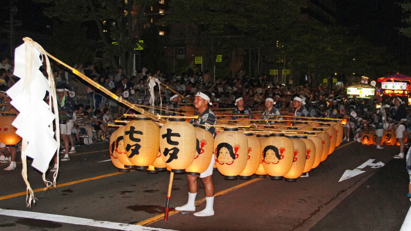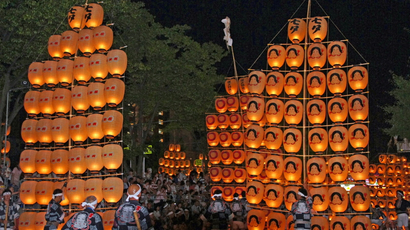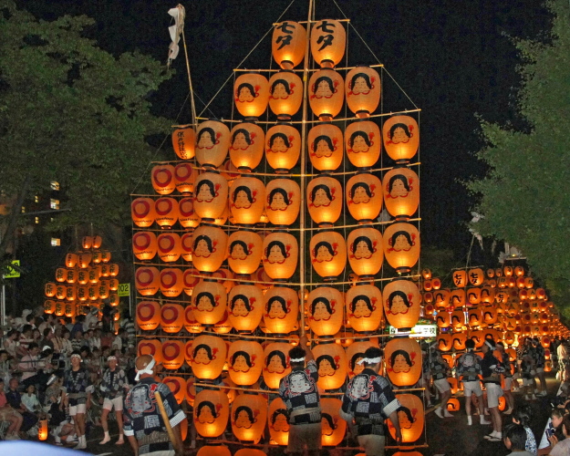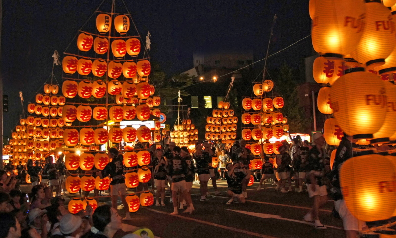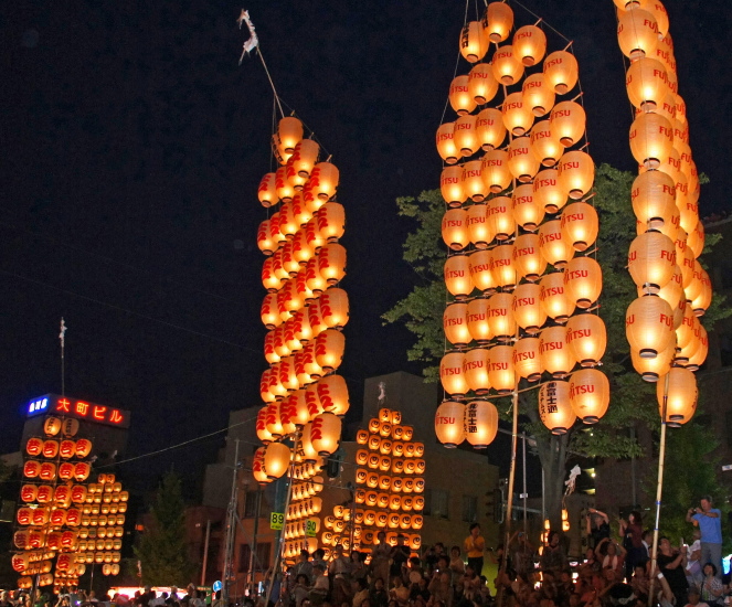 - パレード・演技時間:夜竿灯 午後7時30分~8時30分、昼竿燈(妙技会) 午前9時~午後4時30分