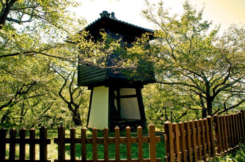 高岡城は平城で本丸、二の丸、三の丸、明丸、鍛冶丸の5つ郭で構成され、それぞれが広く深い堀と高い土塁によって囲まれている。1614年(慶長19年)に利長が死去し、1615年(元和元年)に一国一城令が発令されると高岡城は廃城となり主要な建物は破棄されるが、加賀藩における当地方の軍事的、行政的な重要性は変わらず旧城内には米蔵・塩蔵・火薬蔵・番所などが設置され土塁や堀などの城塞的な機能が保持されたままだった。明治時代以降は高岡公園として整備された。 |