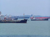 いつものように乗船口近くで記念撮影をし、乗船となる。乗船後はとりあえず自分たちのキャビン確認する。今回は9デッキ右舷側、ルームナンバー9000、ポートサイドとは逆である。ドアを開け、ベランダに出ると、たくさんの貨物船が停泊しているのが見えた。さすが世界有数の貿易港の光景である。