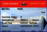 | ◇スーパースター・ヴァーゴ(Super Star Virgo )のシップデーターと乗船カード |