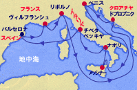 ベニス(イタリア)→メッシーナ(イタリア)→ナポリ(イタリア)→チベタベッキア(イタリア)→バルセロナ