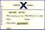 | ◇コンステレーション(Constellation)のシップデーターと乗船カード |